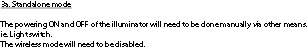 The powering ON and OFF of the illuminator will need to be done manually via other means i.e. Light switch.